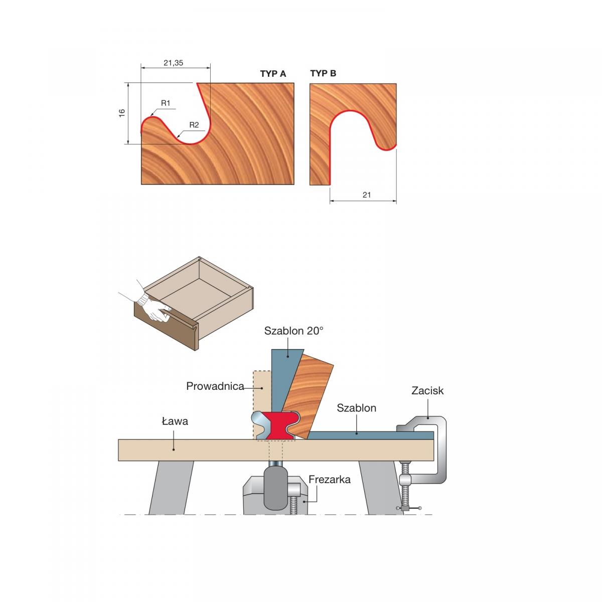 Umożliwia wykonanie wgłębień chwytowych w popularnych obecnie frontach meblowych.