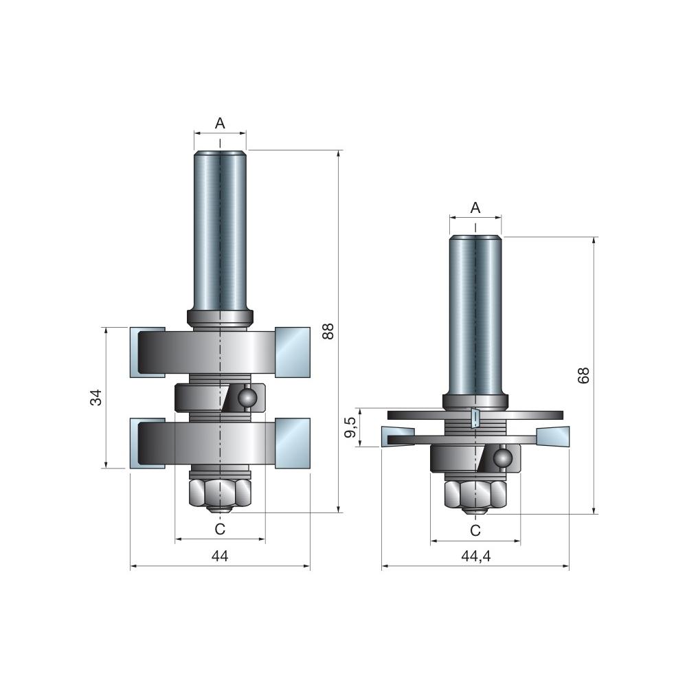 Frez regulowany do wczepów na pióro i wpust – zestaw x 44 x 34 x 88,0 x 12 Z2 FREUD 99-03612P