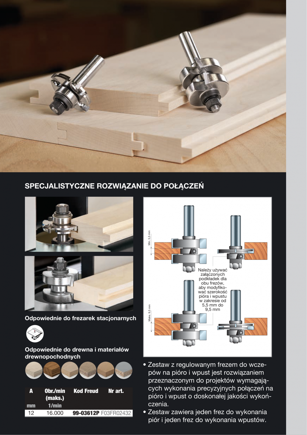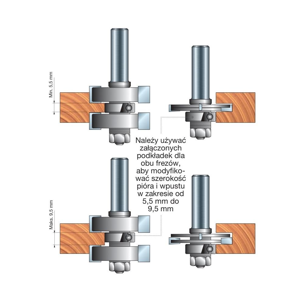 Do projektów wymagających precyzyjnych połączeń na pióro i wpust o doskonałej jakości wykończenia powierzchni.Zestaw zawiera jeden frez do wykonania piór i jeden frez do wykonania wpustów.