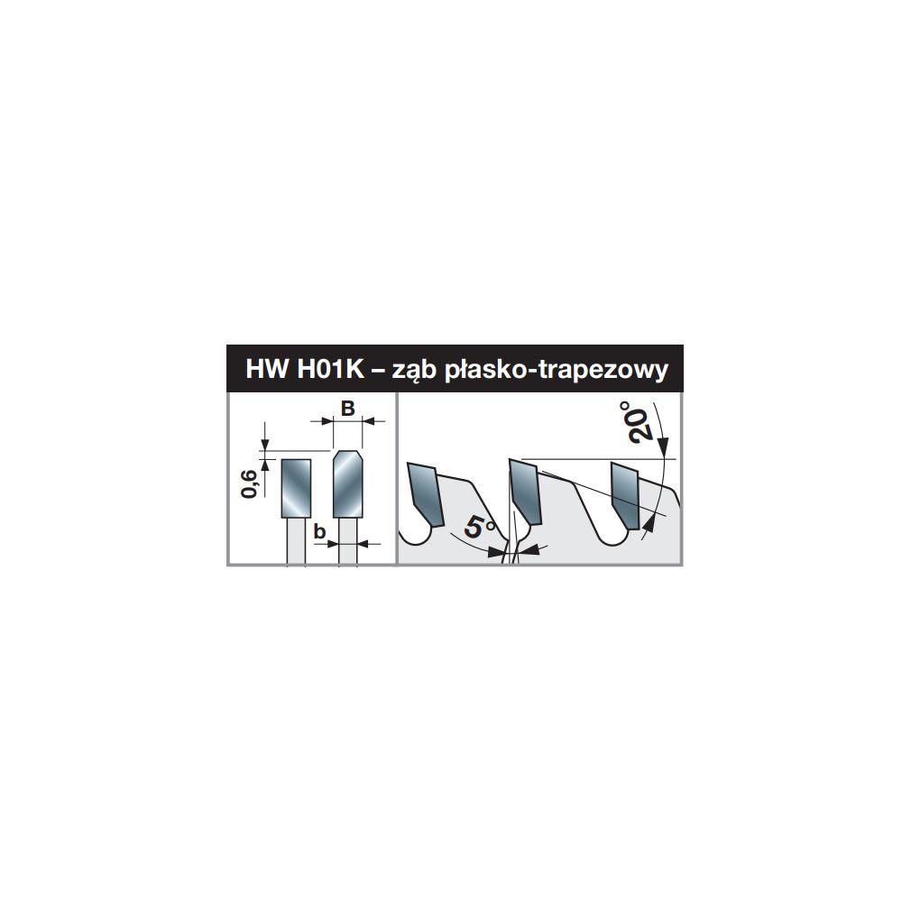 | Średnica piły | Szerokość rzazu piły | Szerokość płaszcza piły | Średnica otworu mocującego | Liczba zębów piły | Kąt natarcia | Nr katalogowy |