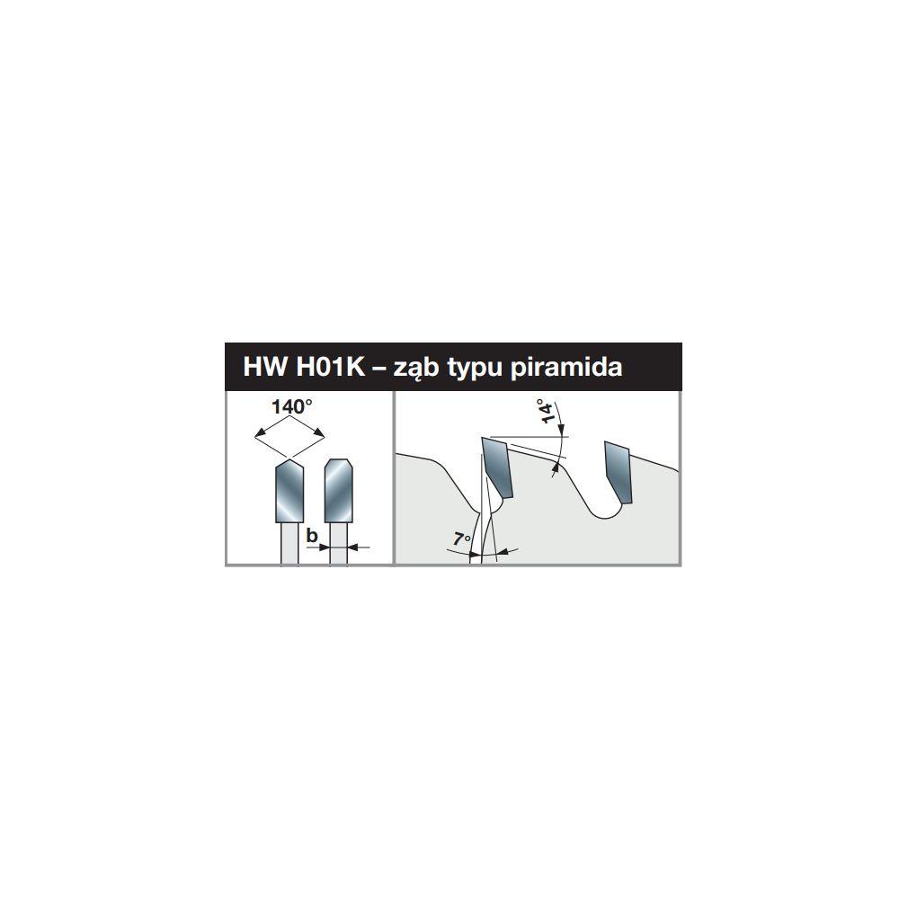 ,p.Piła posiada chromowane zęby techniką nazwaną przez technologów Freud EXrim, zapobiega nagrzewaniu się ęglika oraz odpowiada za długą żywotność i odporność zębów. Ząb typu piramida występujący w tego rodzaju piłach, świetnie sprawdza się w cięciu profili PVC, ALU, gwarantuje świetne efekty pracy, bez wyrwań i ekonomiczność