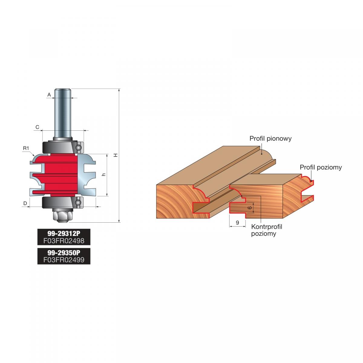 Zestaw profil/kontrprofil x 50,40 x 32,70 x 104,00 x 12,7 Z2 FREUD 99-29350P